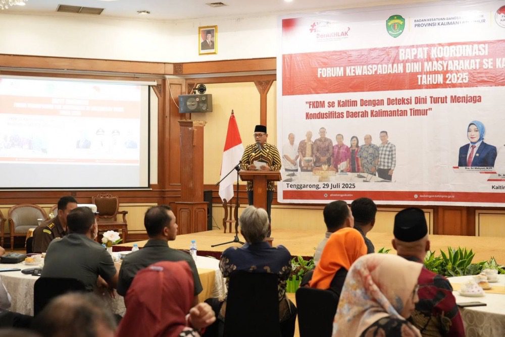 Editorialkaltim.com – Wakil Gubernur Kalimantan Timur, Seno Aji, membuka Rapat Koordinasi Forum Kewaspadaan Dini Masyarakat (FKDM) se-Kaltim tahun 2025 di Grand Elty Singgasana Hotel, Tenggarong, Kutai Kartanegara, Selasa (29/7/2025).
