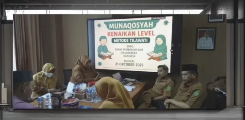 Editorialkaltim.com – Dalam rangka memperkuat nilai-nilai religius dan pembinaan spiritual di lingkungan kerja, Dinas Pemberdayaan Masyarakat dan Desa (DPMD) Kabupaten Kutai Kartanegara (Kukar) menggelar kegiatan Munaqosyah Kenaikan Level Metode Tilawati. Kegiatan ini diikuti oleh pegawai yang tergabung dalam program Bimbingan Baca Al-Qur’an (BBAQ).