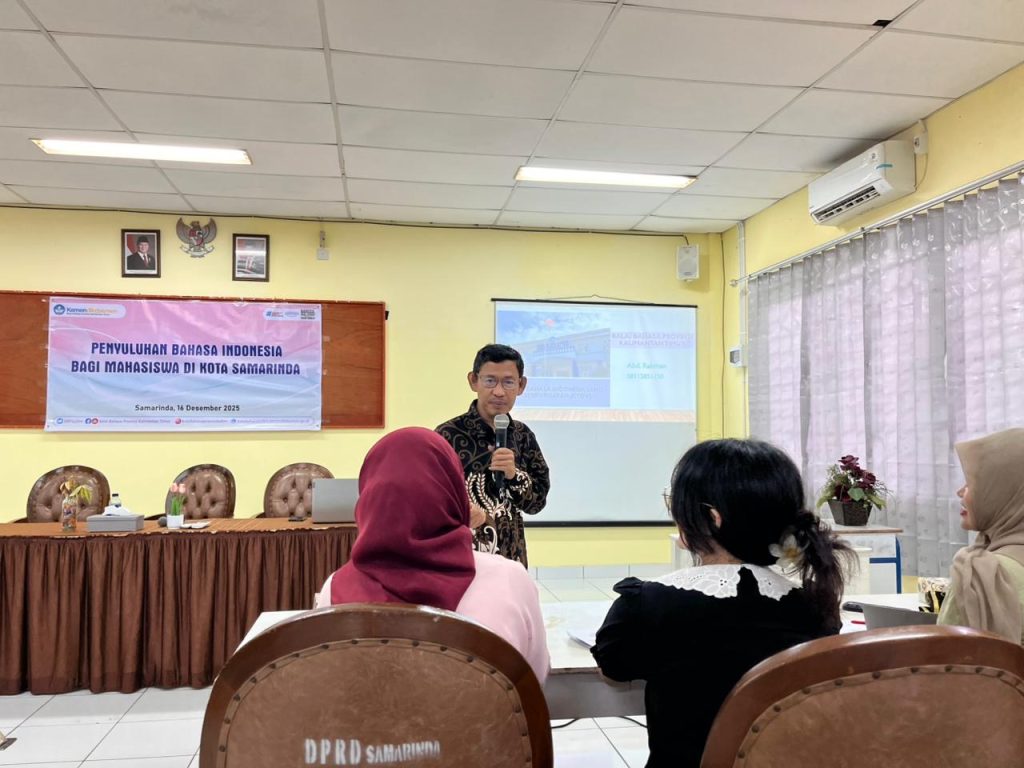 Editorialkaltim.com — Balai Bahasa Provinsi Kalimantan Timur menggelar Penyuluhan Bahasa Indonesia bagi Mahasiswa di Laboratorium SMP Negeri 1 Samarinda, Selasa (16/12/2025). Kegiatan ini diikuti puluhan mahasiswa dari berbagai perguruan tinggi di Samarinda.