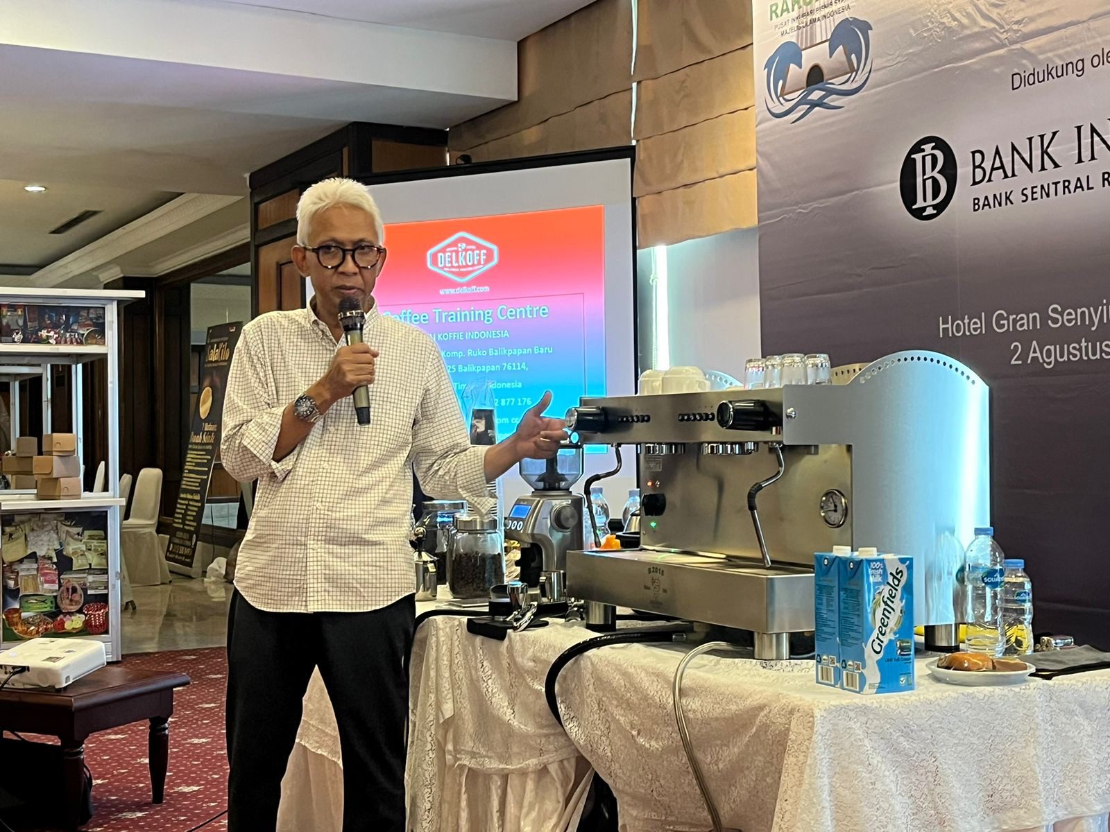 pengusaha kopi sekaligus pemilik Delkoff Coffee dan Warung Kopi Nusantara, Didin Hamid menjelaskan proses pembuatan kopi kepada para Coffee Meetup…