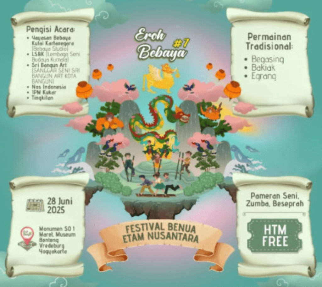 Editorialkaltim.com — Festival budaya tahunan “Eroh Bebaya” kembali digelar pada Sabtu, 28 Juni 2025, di kawasan Monumen Serangan Umum 1 Maret dan Museum Benteng Vredeburg, Yogyakarta. Mengusung tema “Festival Benua Etam Nusantara,” agenda ini menjadi ajang promosi budaya Kalimantan Timur, khususnya Kabupaten Kutai Kartanegara (Kukar), di panggung nasional.