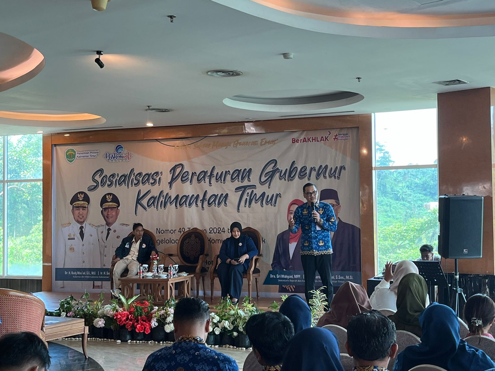 Kepala Dinas Komunikasi dan Informatika Provinsi Kaltim, Muhammad Faisal tengah saat memberi sambutan kegiatan Sosialisasi Pergub Kaltim No. 49/2024 (Foto:…