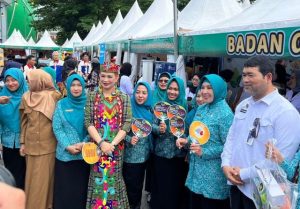 Ketua Tim Penggerak Pemberdayaan dan Kesejahteraan Keluarga (TP PKK) Kaltim, Sarifah Suraidah saat mengunjungi gerai UMKM Festifal 2025 Editorialkaltim.com —…