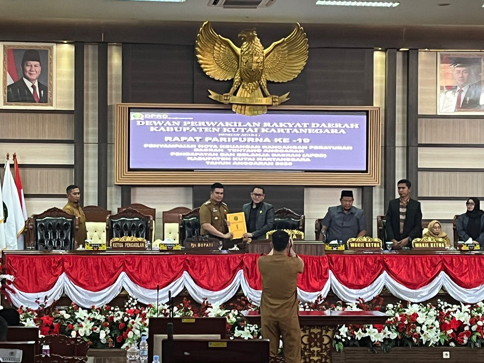 Pjs Bupati Kukar Bambang Arwanto bersama dengan ketua DPRD Kukar Junaidi serah terima Nota Keuangan Rancangan Perda APBD Tahun Anggaran…