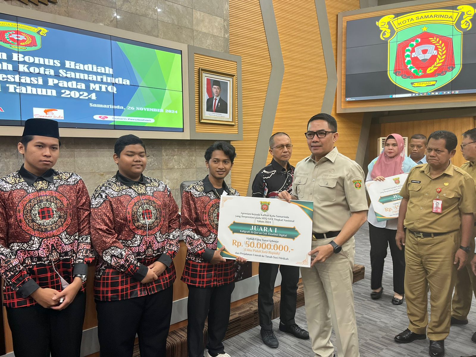Wali Kota Samarinda Serahkan Bonus Kafilah Berprestasi di MTQ Nasional 2024