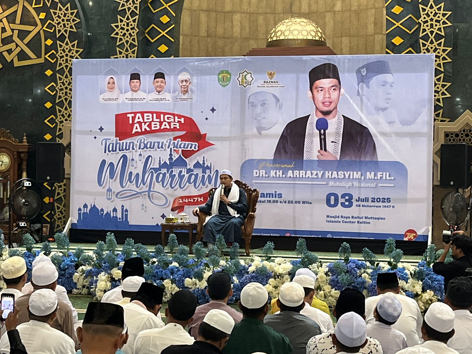Ustaz Arrazy Hasyim Kupas Makna Hijrah dari Para Nabi saat menyampaikan ceramah Tablik Akbar kepada jamaah Masjid Baitul Muttaqin Samarinda…